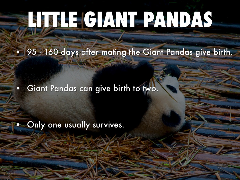 • 95 - 160 days after mating the Giant Pandas give birth.
