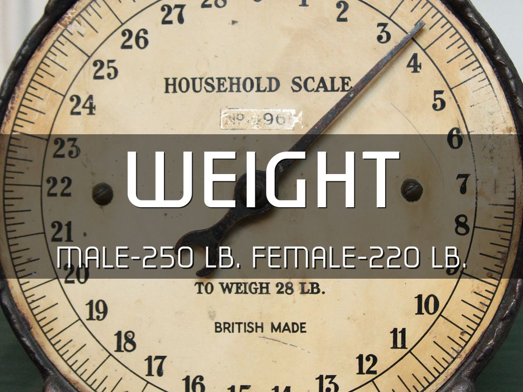 male-250 lb. female-220 lb.