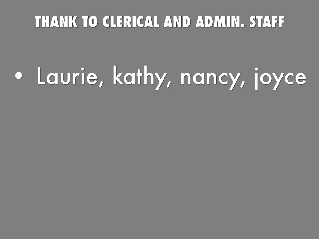 THANK TO CLERICAL AND ADMIN. STAFF