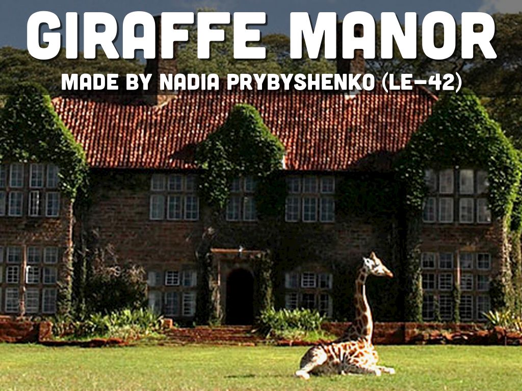 Giraffe Manor is a small hotel in the Karen suburb of Nairobi, Kenya which, together with its associated Giraffe Centre, serves as a home to a number of endangered Rothschild giraffes.