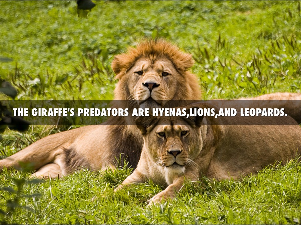 THE GIRAFFE'S PREDATORS ARE HYENAS,LIONS,AND LEOPARDS.