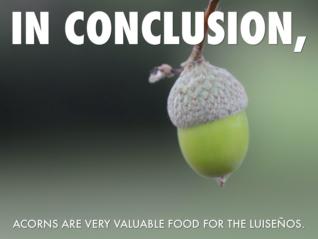 ACORNS ARE VERY VALUABLE FOOD FOR THE LUISEÑOS.