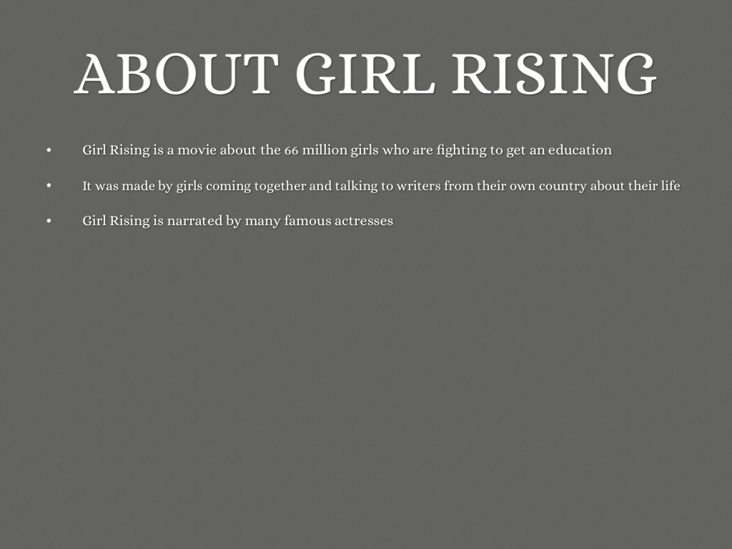 Girl Rising is a movie about the 66 million girls who are fighting to get an education