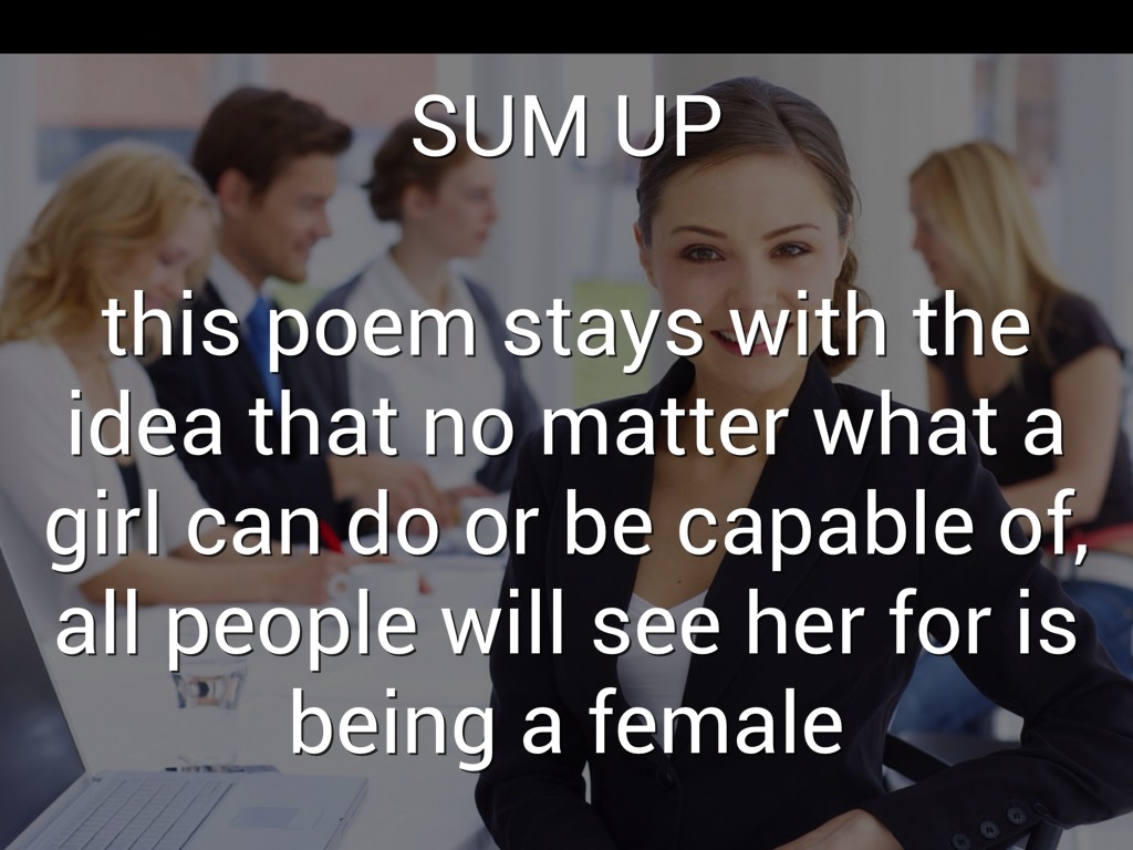 this poem stays with the idea that no matter what a girl can do or be capable of, all people will see her for is being a female