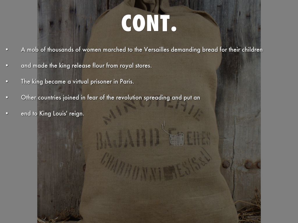 A mob of thousands of women marched to the Versailles demanding bread for their children
