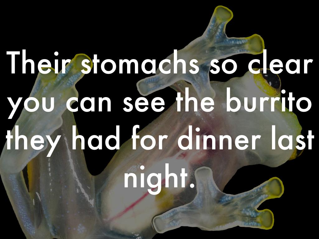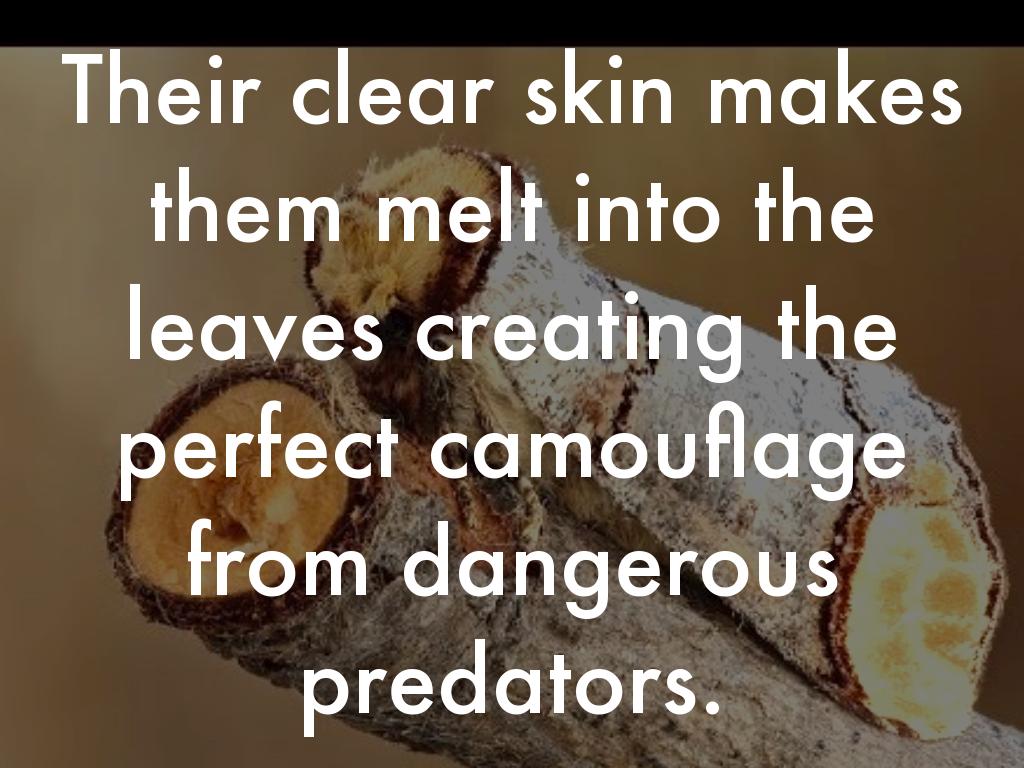 Their clear skin makes them melt into the leaves creating the perfect camouflage from dangerous predators.
