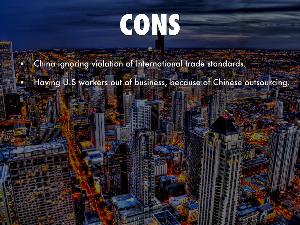 • Having U.S workers out of business, because of Chinese outsourcing.