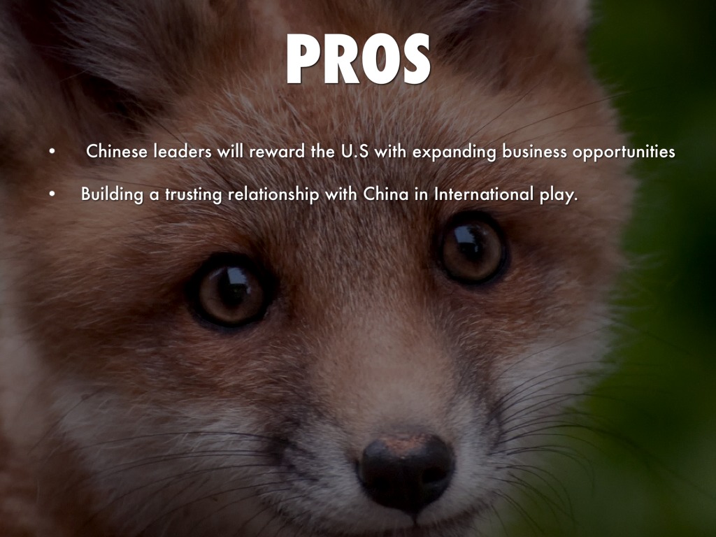 • Chinese leaders will reward the U.S with expanding business opportunities