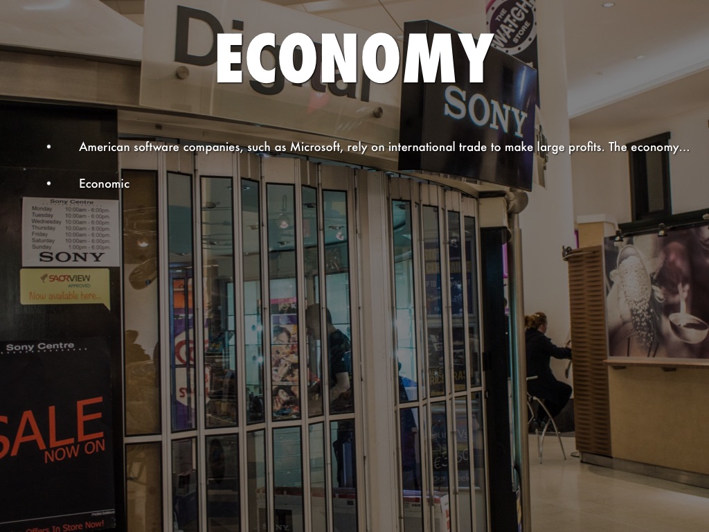 American software companies, such as Microsoft, rely on international trade to make large profits. The economy of the country of Saudi Arabia is almost entirely dependent on oil exports
