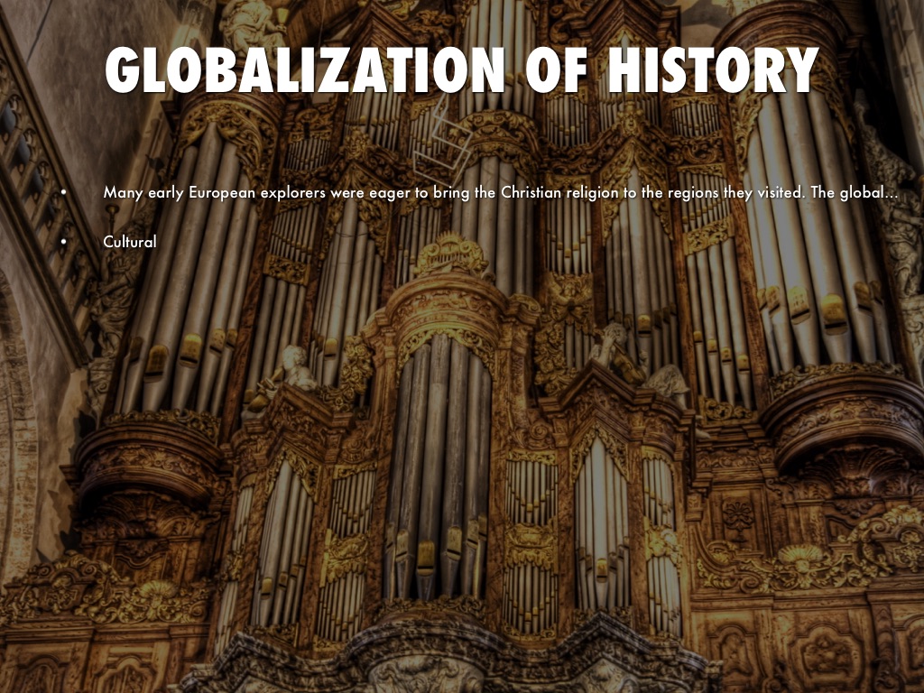 Many early European explorers were eager to bring the Christian religion to the regions they visited. The globalization of Christianity spread from Europe to Latin America through Christian missionaries working with the local populations.