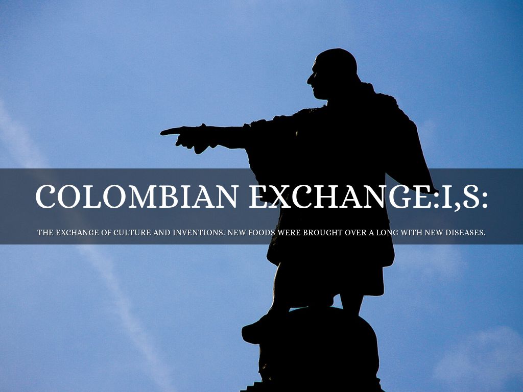 The exchange of culture and inventions. New foods were brought over a long with new diseases.