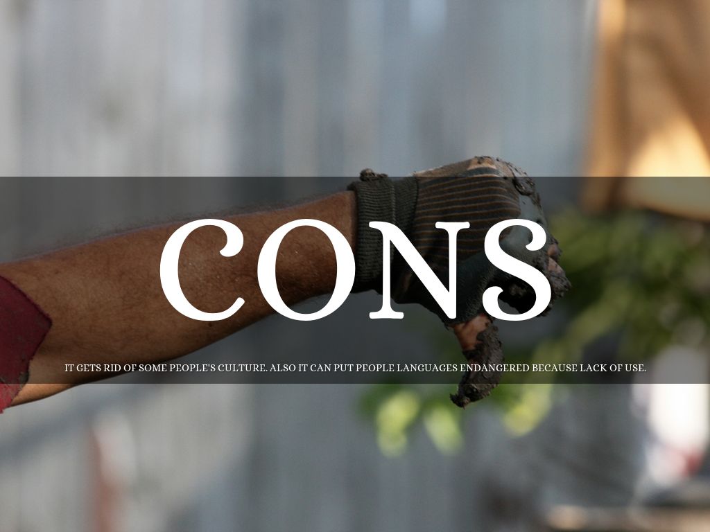It gets rid of some people's culture. Also it can put people languages endangered because lack of use.