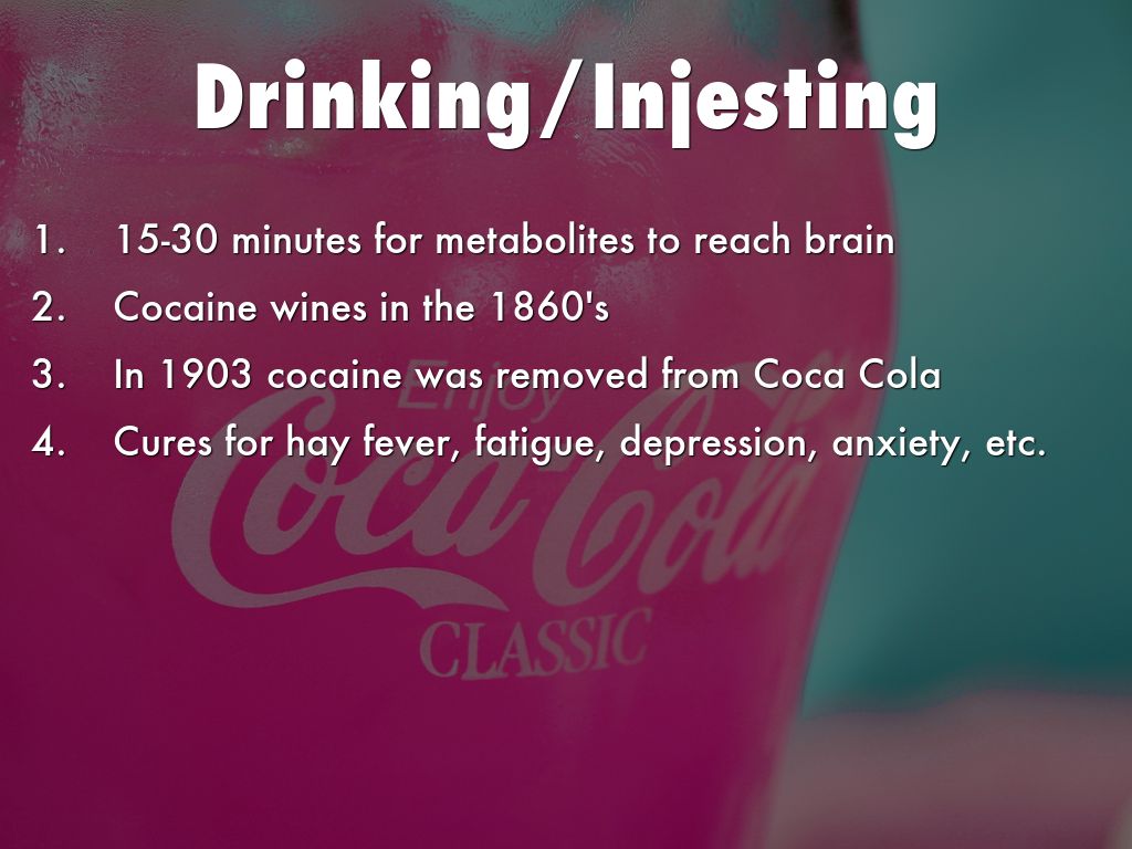 In 1903 cocaine was removed from Coca Cola