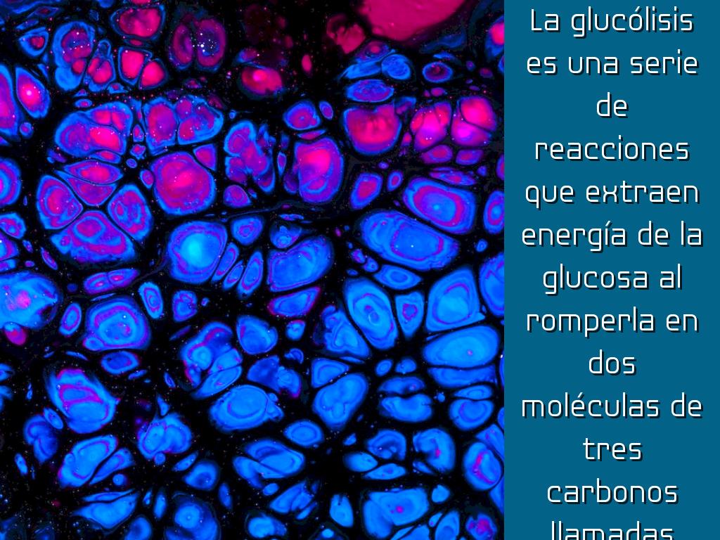La glucólisis es una serie de reacciones que extraen energía de la glucosa al romperla en dos moléculas de tres carbonos llamadas piruvato.