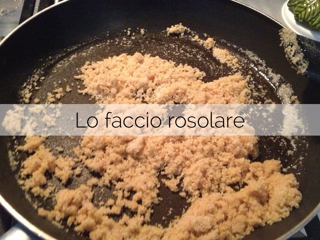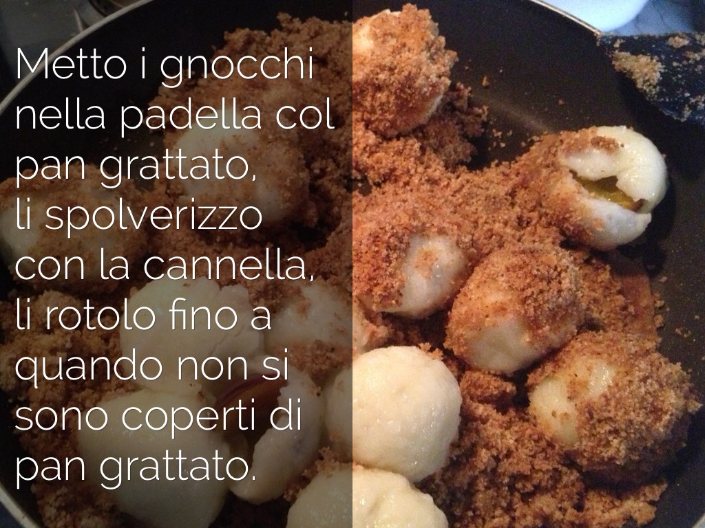 Metto i gnocchi nella padella col pan grattato,