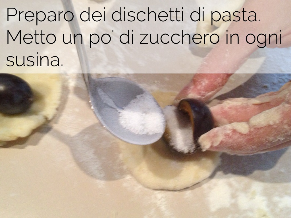 Metto la susina col taglio all'ingiù nel disco di pasta.