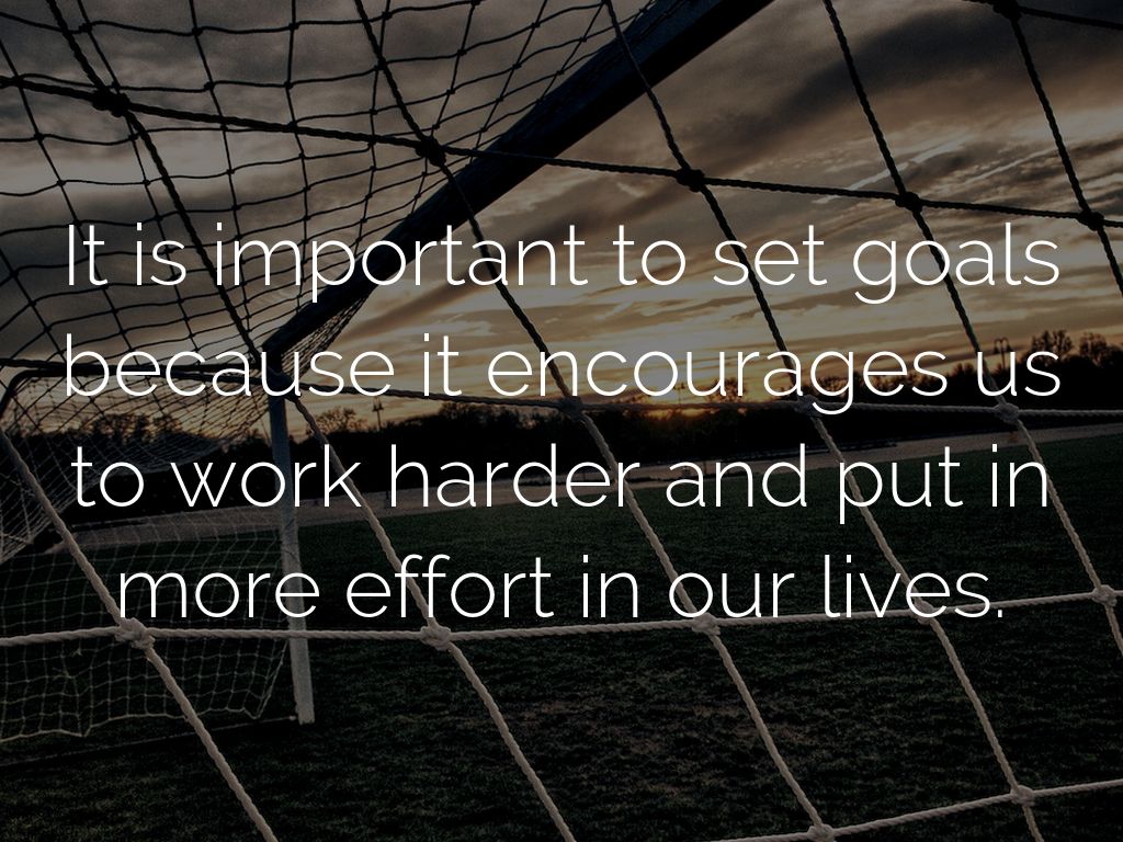 It is important to set goals because it encourages us to work harder and put in more effort in our lives.