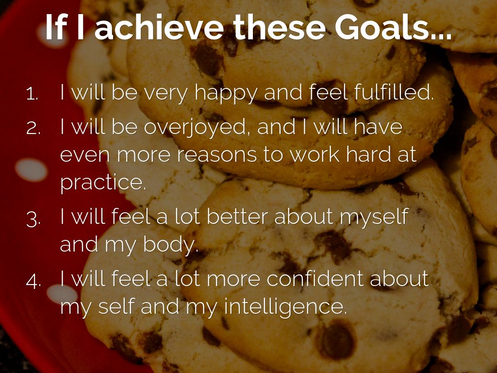 I need to stop eating unnecessary food, like multiple deserts. I also need to work harder during my activities.