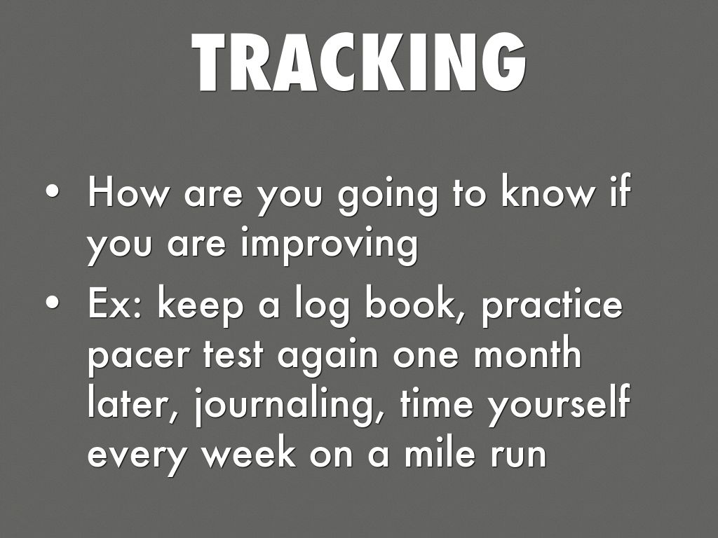 Ex: keep a log book, practice pacer test again one month later, journaling, time yourself every week on a mile run