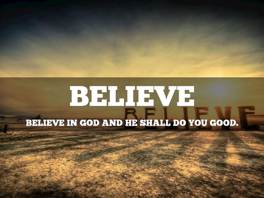 BELIEVE IN GOD AND HE SHALL DO YOU GOOD.