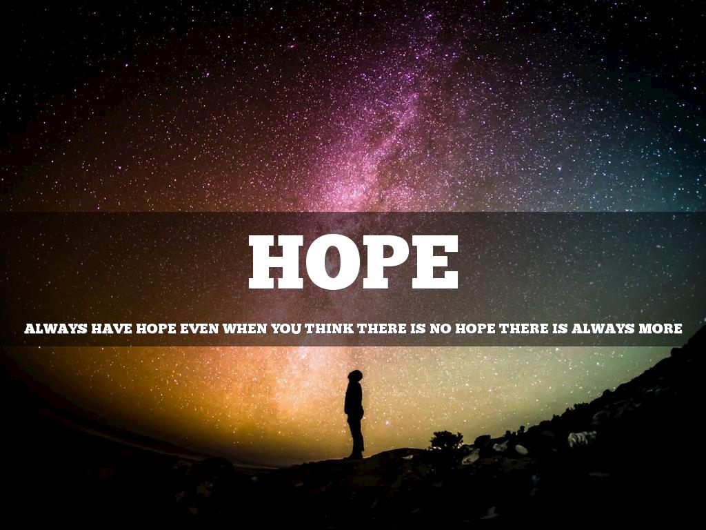 ALWAYS HAVE HOPE EVEN WHEN YOU THINK THERE IS NO HOPE THERE IS ALWAYS MORE