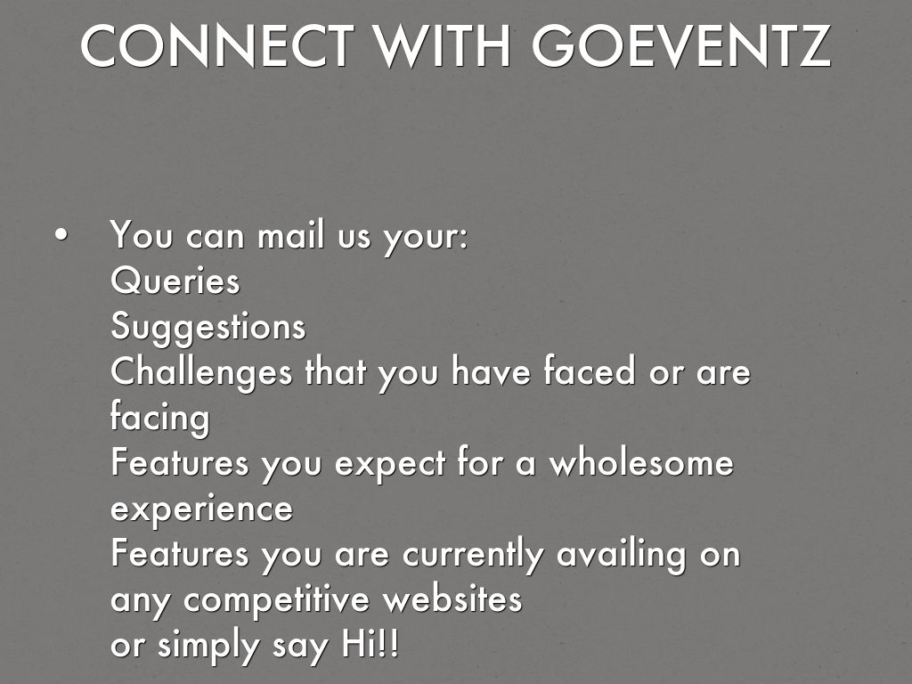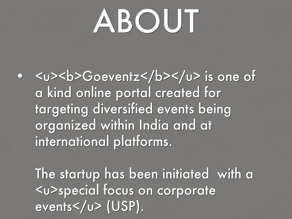 Goeventz is one of a kind online portal created for targeting diversified events being organized within India and at international platforms.