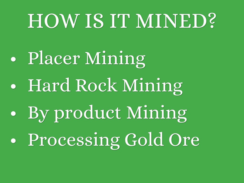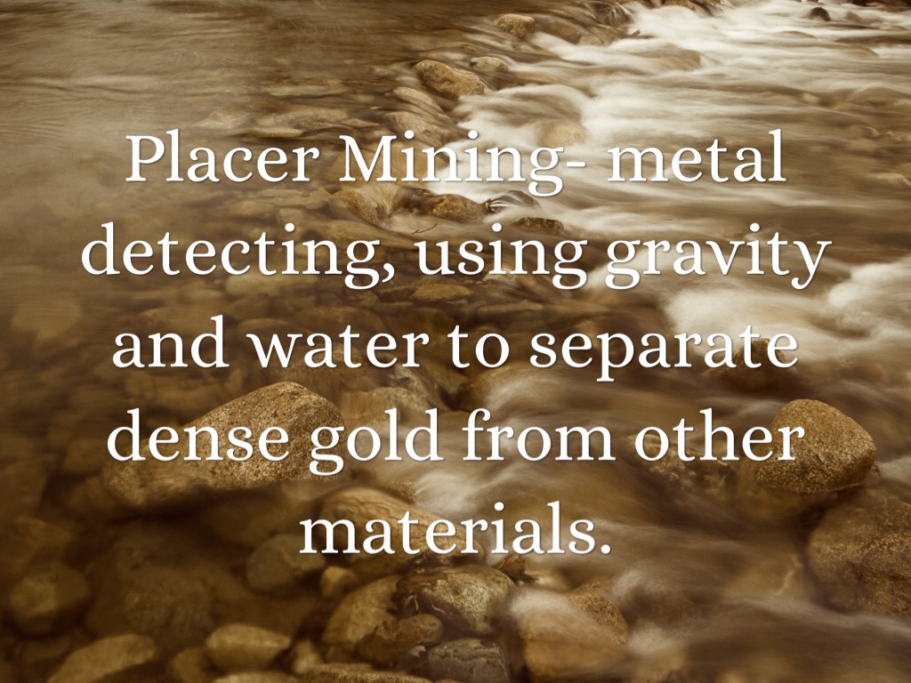 Placer Mining- metal detecting, using gravity and water to separate dense gold from other materials.
