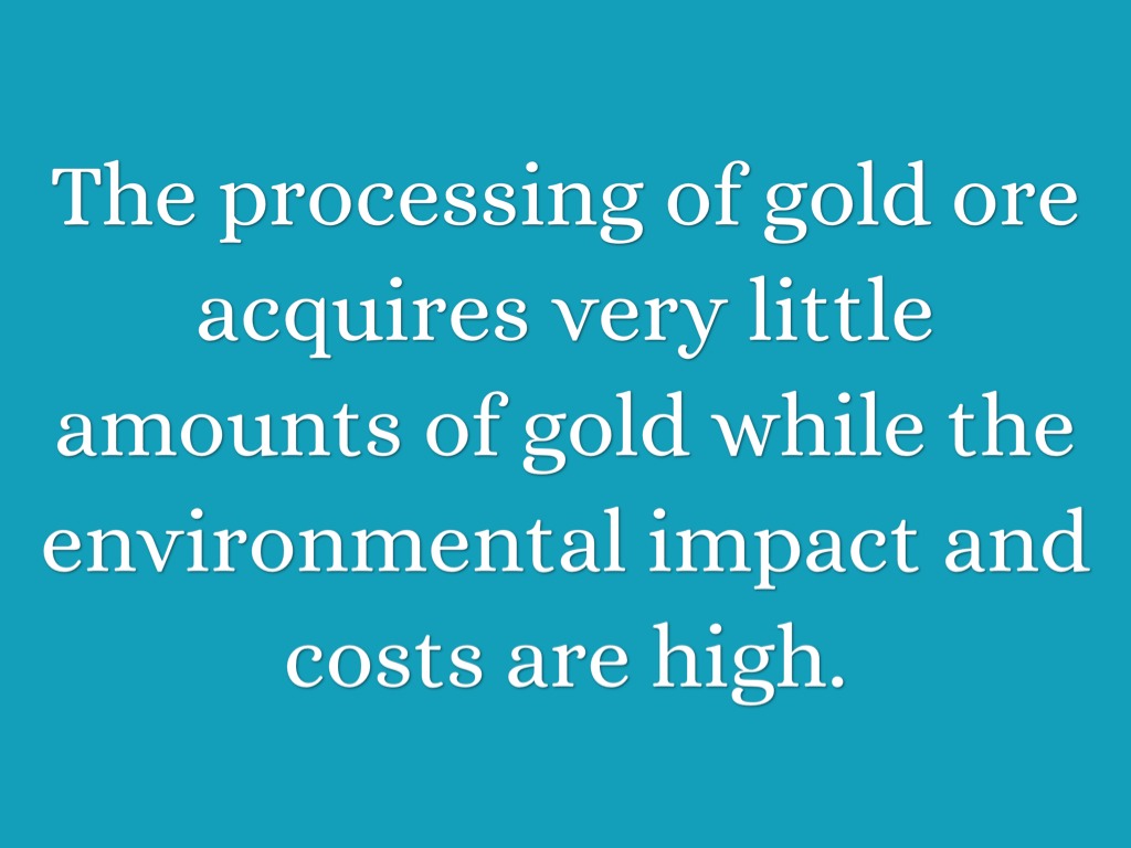 The processing of gold ore acquires very little amounts of gold while the environmental impact and costs are high.