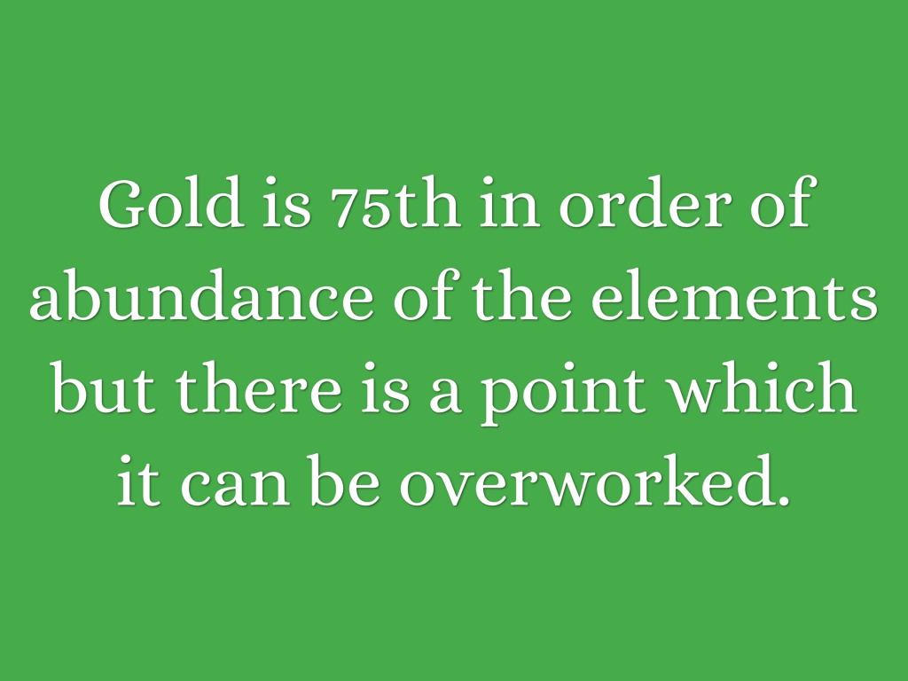 Gold is 75th in order of abundance of the elements but there is a point which it can be overworked.