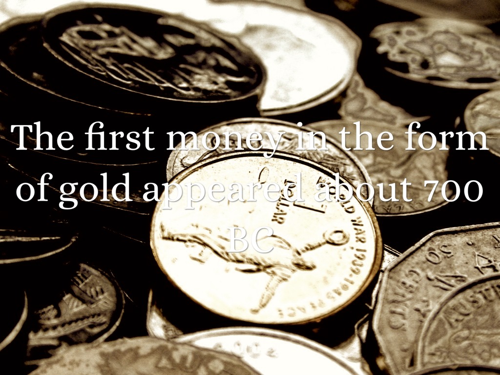 The first money in the form of gold appeared about 700 BC