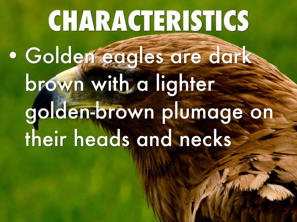 Golden eagles are dark brown with a lighter golden-brown plumage on their heads and necks