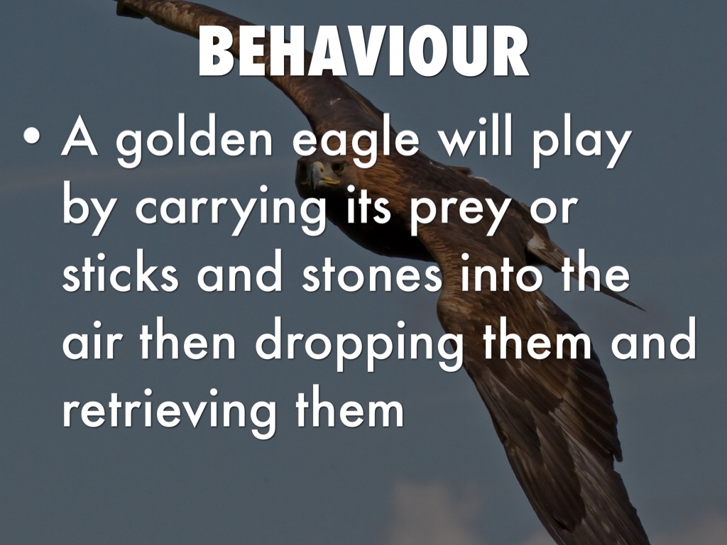 A golden eagle will play by carrying its prey or sticks and stones into the air then dropping them and retrieving them