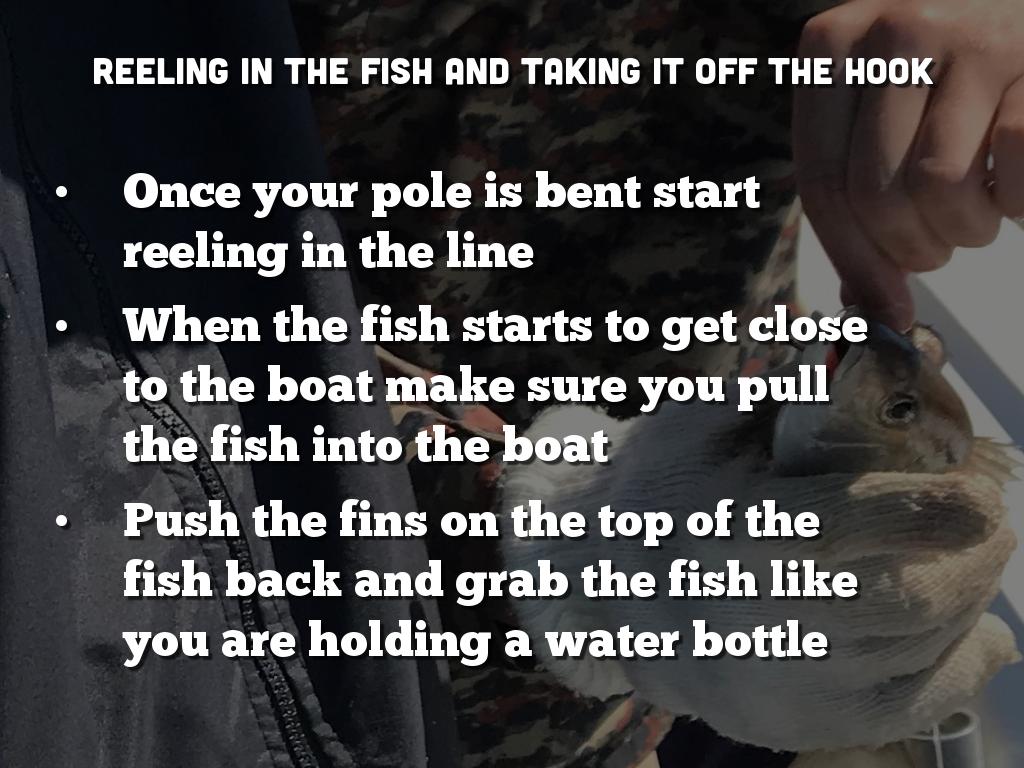 • When the fish starts to get close to the boat make sure you pull the fish into the boat