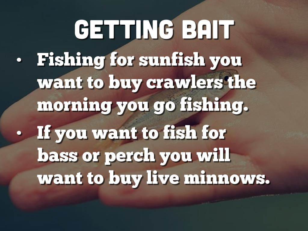 • If you want to fish for bass or perch you will want to buy live minnows.