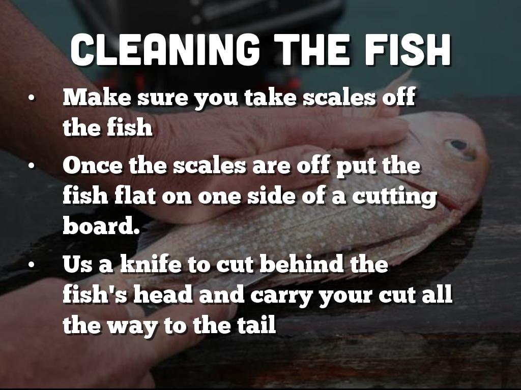 • Once the scales are off put the fish flat on one side of a cutting board.