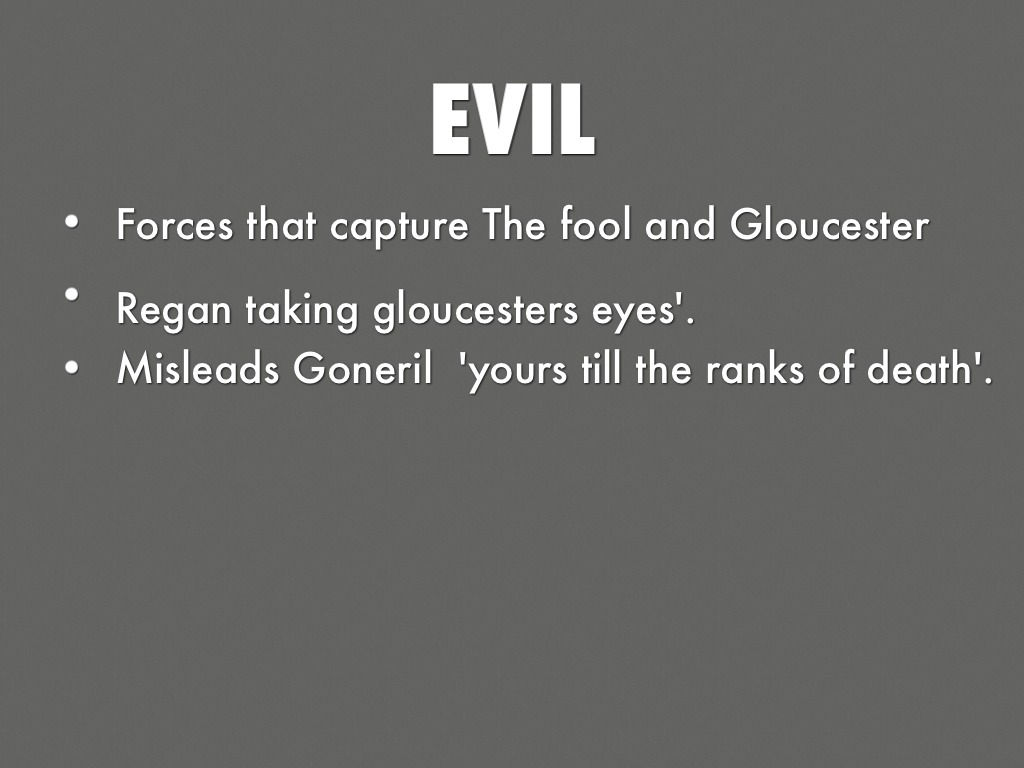 Provokes Lear into madness,'I'll see their trial first'.'i am a man more sinn'd against than sinning'.