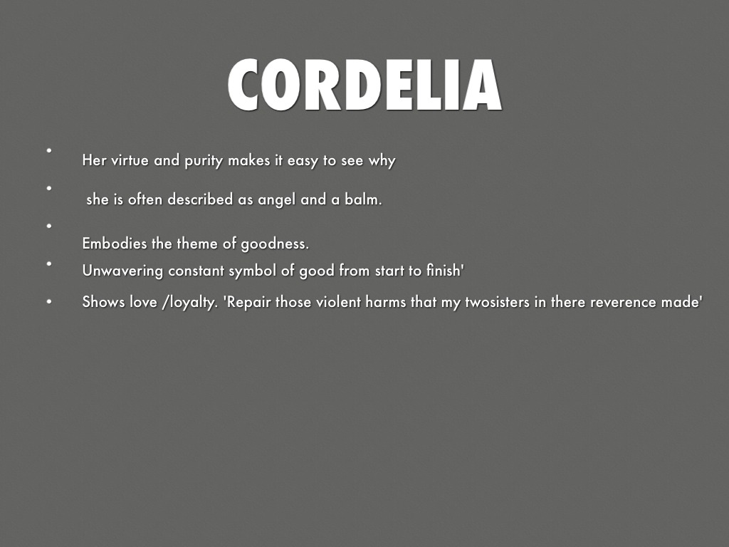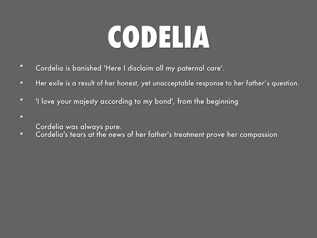 Cordelia's tears at the news of her father's treatment prove her compassion