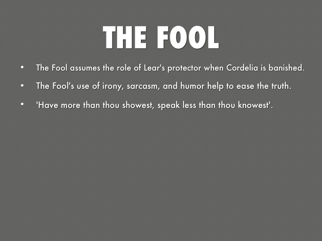 The Fool's use of irony, sarcasm, and humor help to ease the truth.