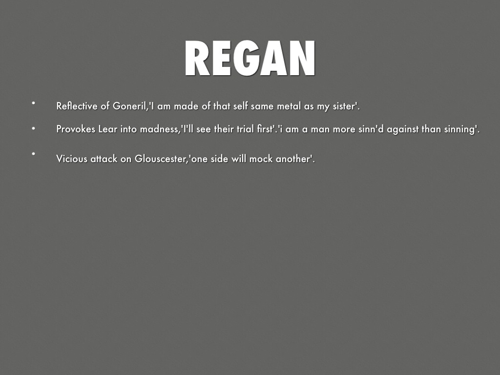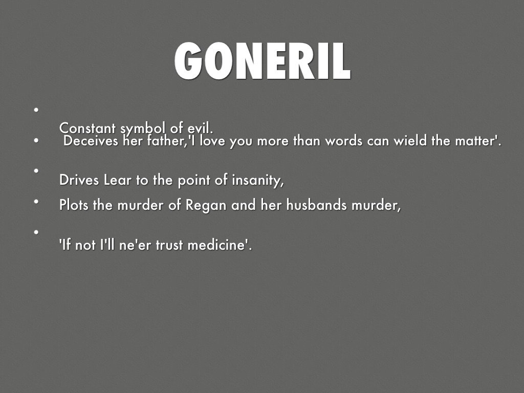 Reflective of Goneril,'I am made of that self same metal as my sister'.