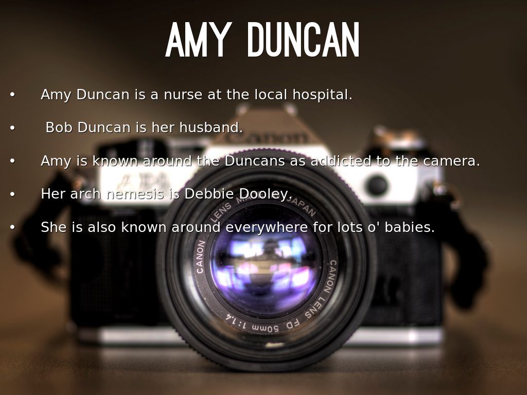 Amy is known around the Duncans as addicted to the camera.