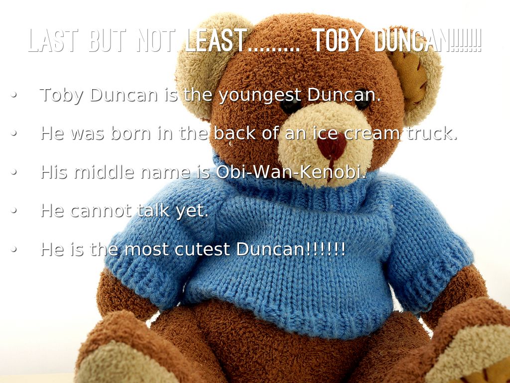 Toby Duncan is the youngest Duncan.