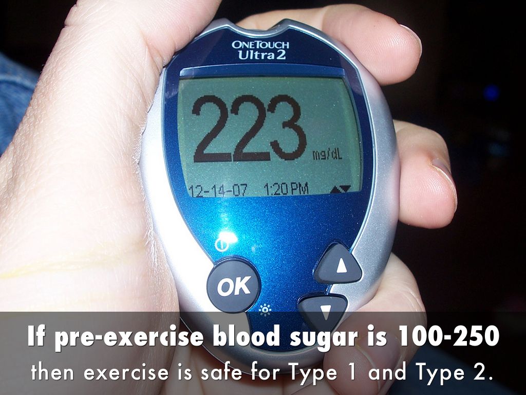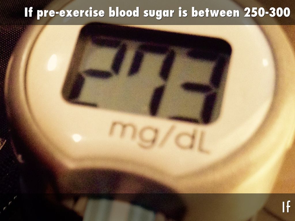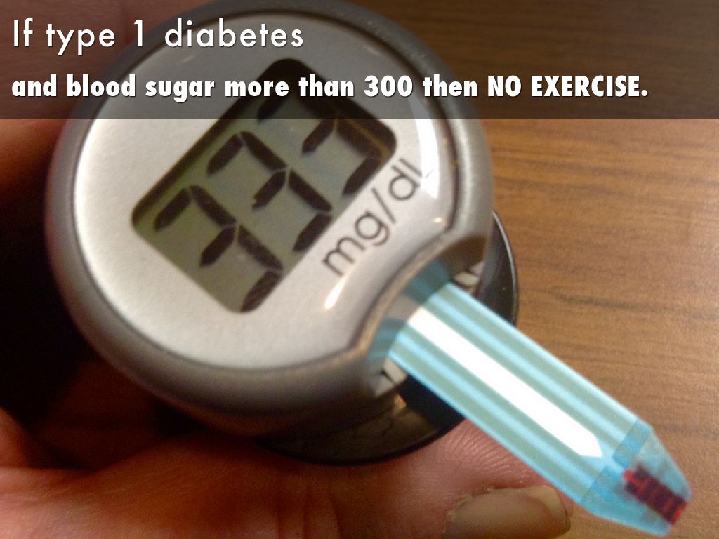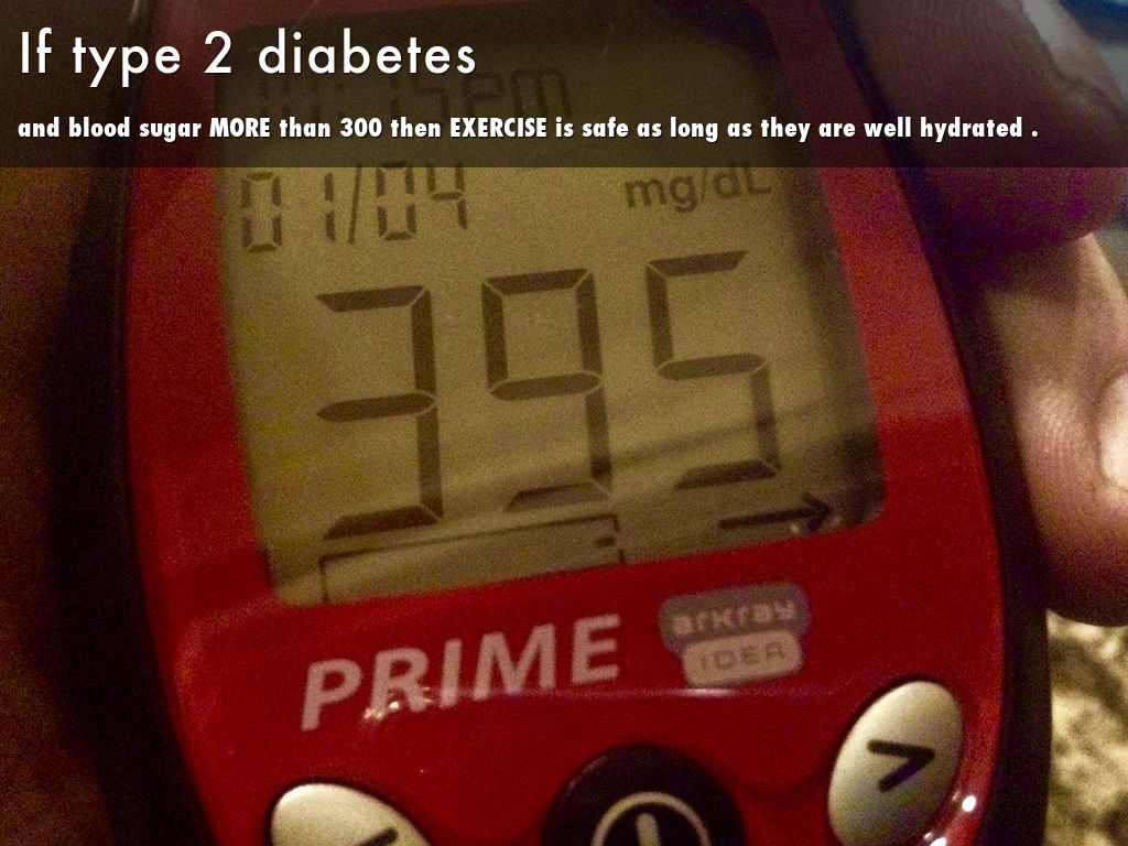 and blood sugar MORE than 300 then EXERCISE is safe as long as they are well hydrated .