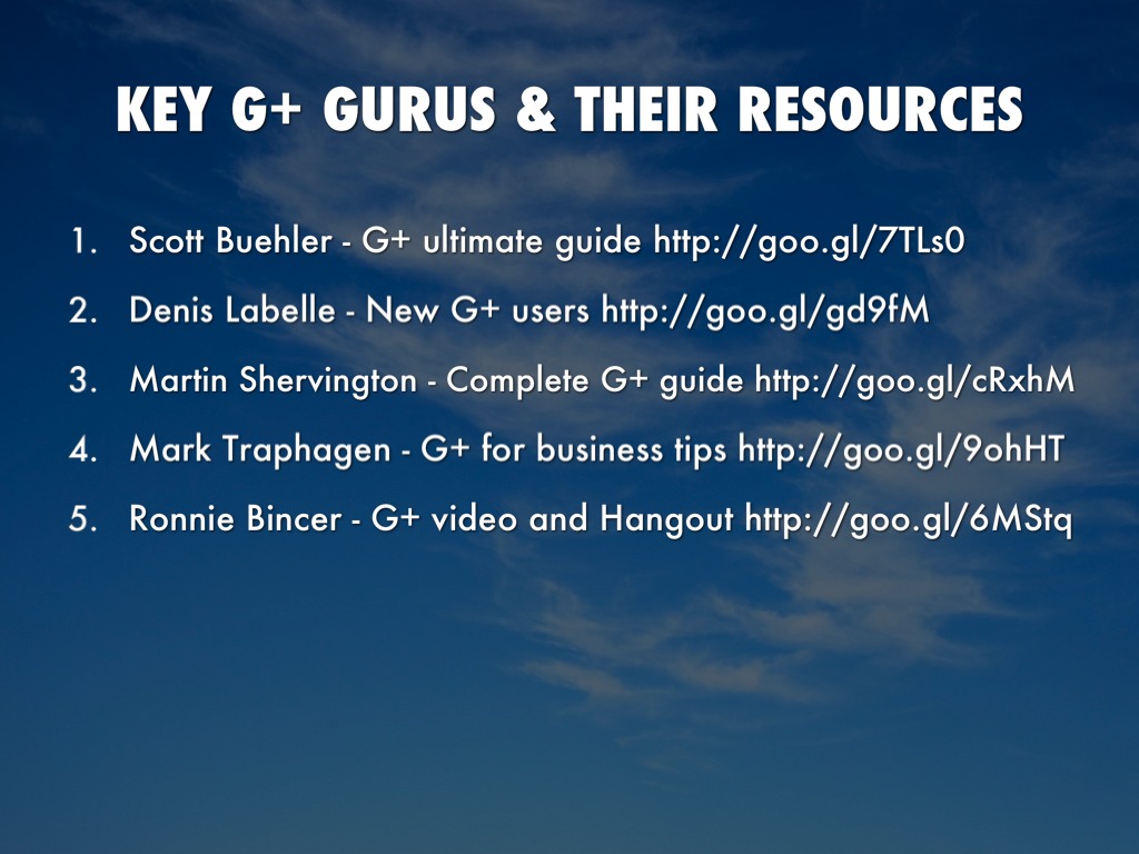 Presentation explaining what Google Plus is, and why you should be using G+. Last slide has links to 5 G+ gurus and their resources that will help you get started using G+. Deck created by Grant Wickes and presented at SMB Dallas in June 2013