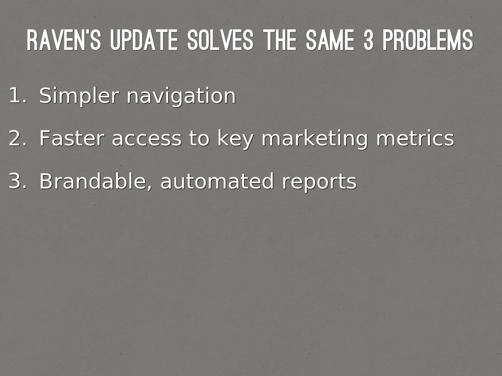 Raven Tools announces a redesigned Google Analytics in their software tool set, helping online marketers understand and report on Google Analytics data simply.