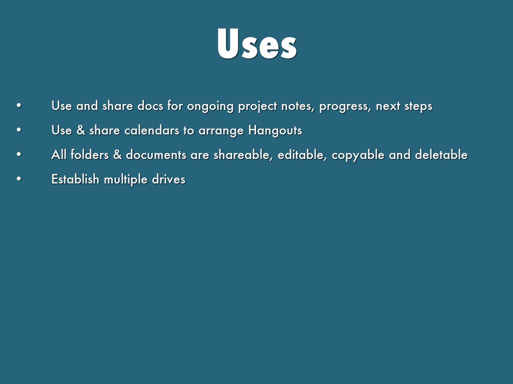 Use and share docs for ongoing project notes, progress, next steps