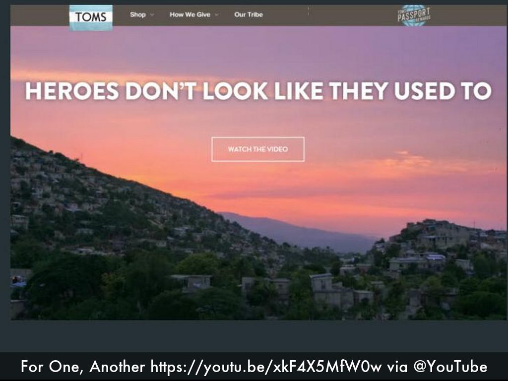 When you buy a pair of TOMS, you're not just buying a pair of shoes. You're part of a movement that believes that we can change the world with our choices. Buying a pair gives a pair. Head over to TOMS.com to learn more.