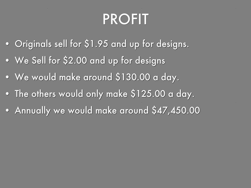 - Originals sell for $1.95 and up for designs.