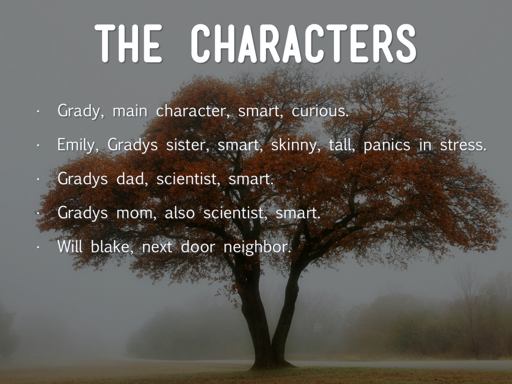 Emily, Gradys sister, smart, skinny, tall, panics in stress.