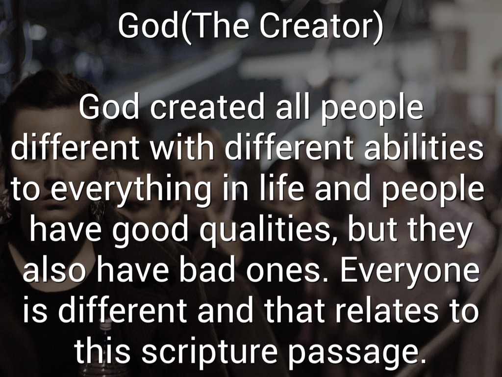 God created all people different with different abilities to everything in life and people have good qualities, but they also have bad ones. Everyone is different and that relates to this scripture passage.
