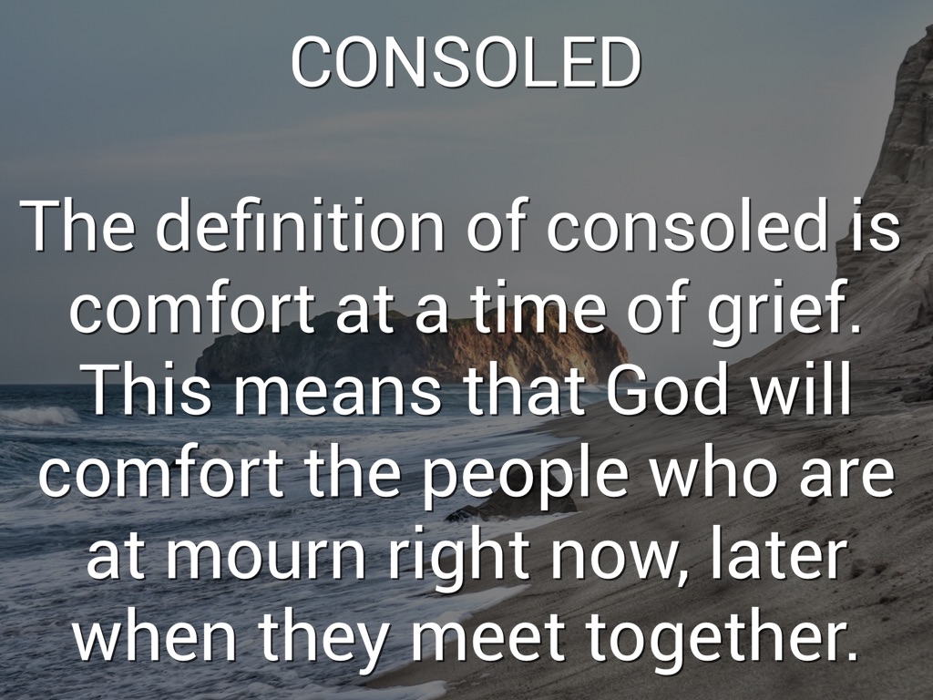The definition of consoled is comfort at a time of grief. This means that God will comfort the people who are at mourn right now, later when they meet together.